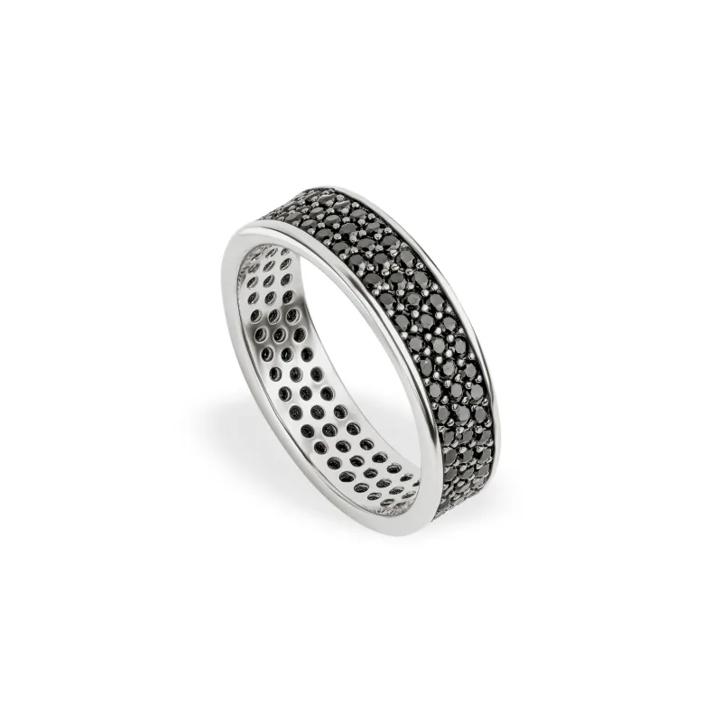 Назва виробу: Каблучка зі срібла родована в чорних фіанітах