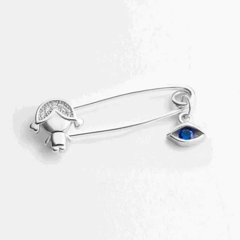 Булавка родированная изготовлена из нежного и безопасного серебра 925 пробы и покрыта родием, чтобы обеспечить комфорт и безопасность детской кожи. Дизайны разнообразны: от забавных фигурок до прекрасных цветочных мотивов - у нас есть булавки на любой вкус и настроение.