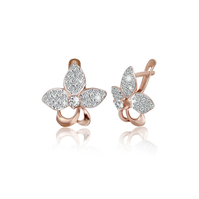 Название изделия: Серебряные серьги лепестки покрытые позолотой с фианитами
