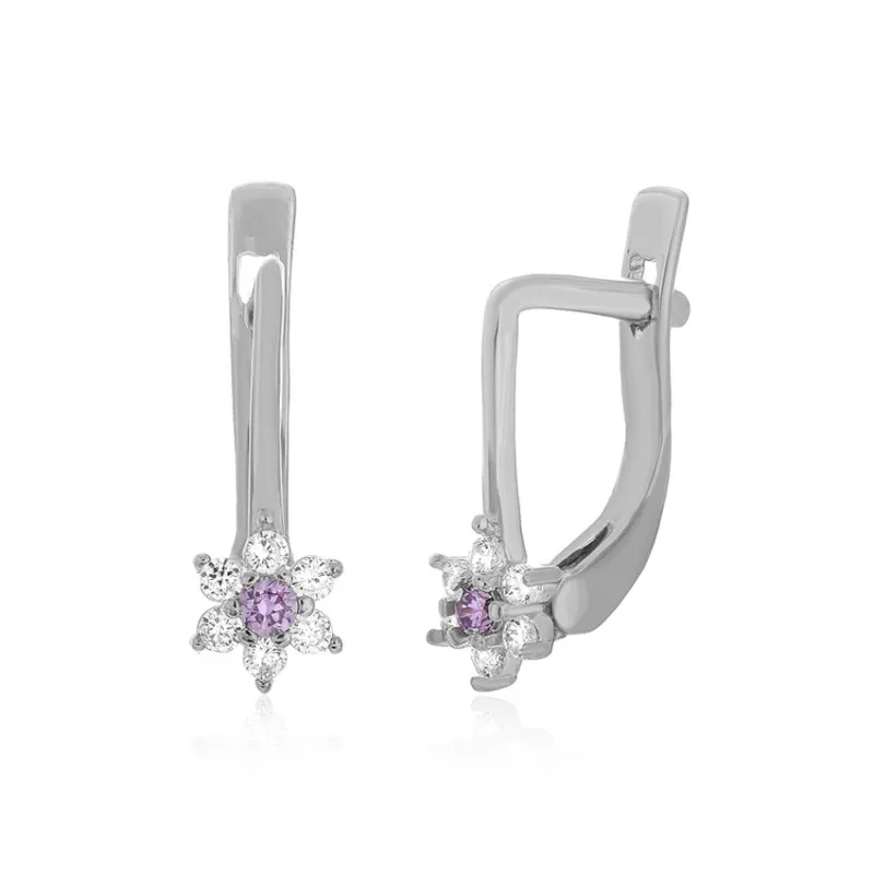 Название изделия: Серебряные серьги с сиреневыми фианитами и "Цветок"