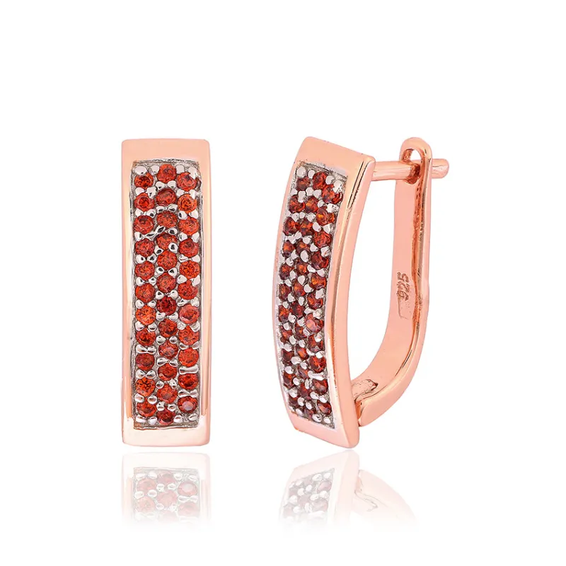 Название изделия: Серебряные серьги в позолоте с красными фианитами