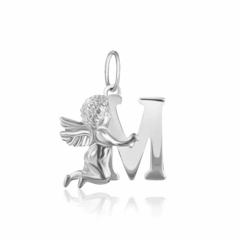 Название изделия: Серебряная подвеска с ангелом буква М