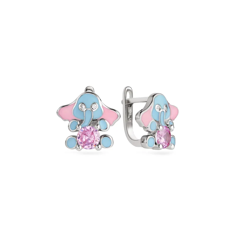 Назва виробу: Срібні сережки дитячі "Слоненятка" з фіанітом та емаллю