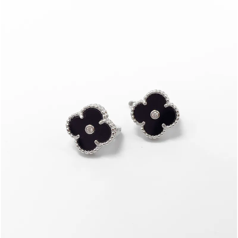 Назва виробу: Срібні сережки в стилі "Van Cleef & Arpels" зі вставкою онікс/фіаніт