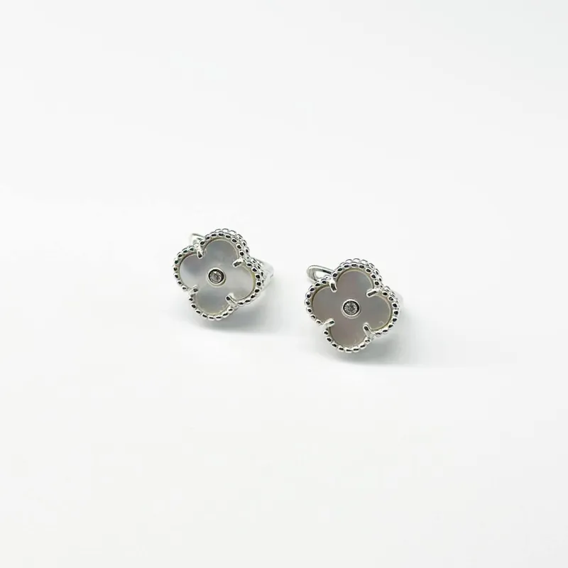 Назва виробу: Срібні сережки на англійській застібці в стилі "Van Cleef & Arpels" зі вставкою перламутр/фіаніт