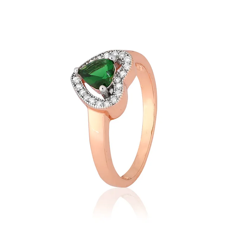 Назва виробу: Срібна каблучка з зеленим фіанітом серце