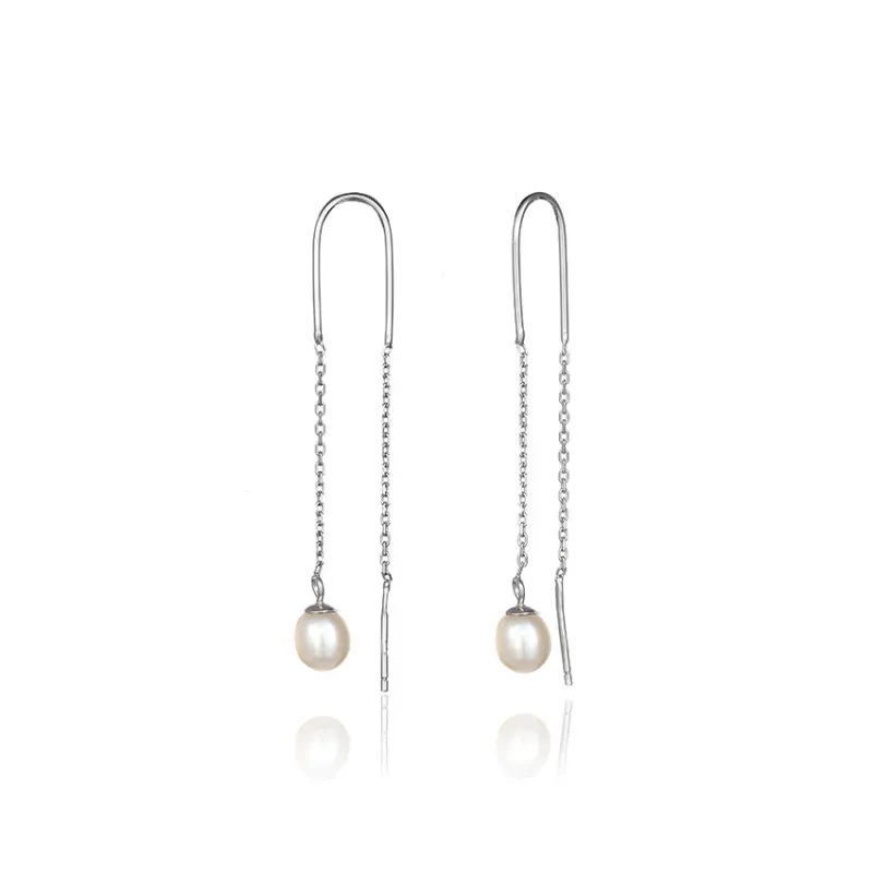 Назва виробу: Срібні сережки протяжки з перлами